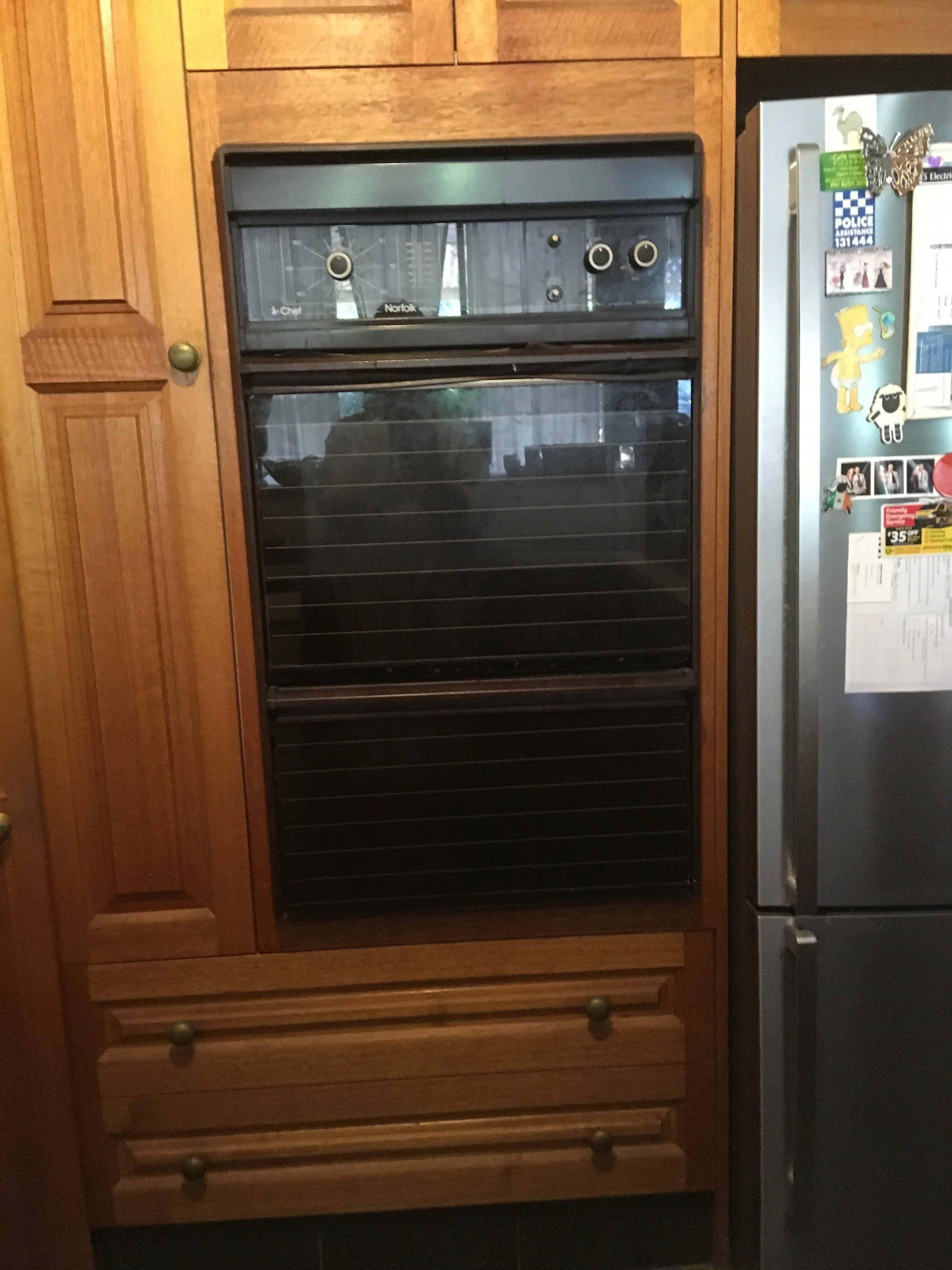 Pictured is an old and faulty gas wall oven which needed replacing.