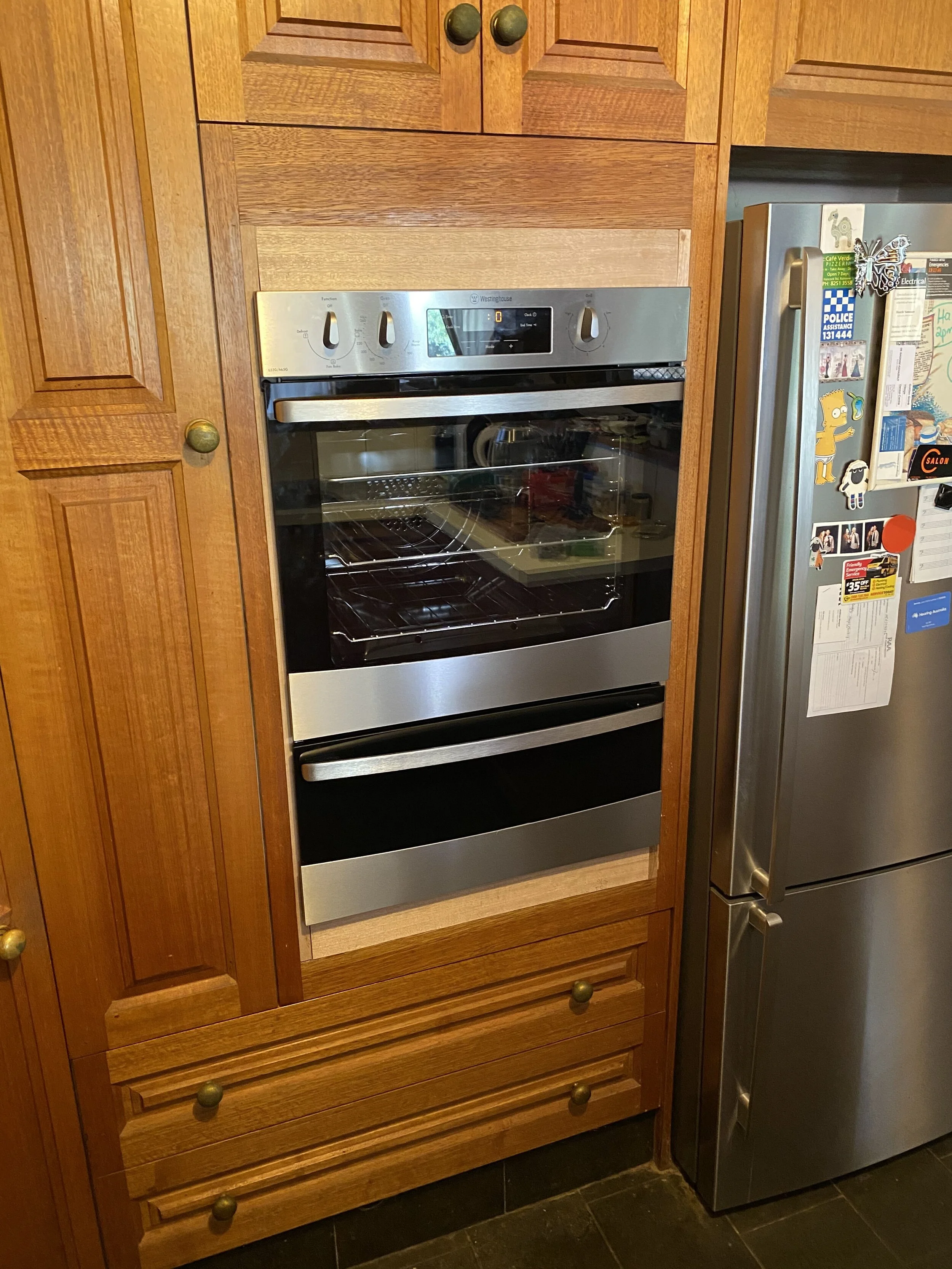 With only minor alterations we were able to fit a modern gas wall oven into the existing cavity.